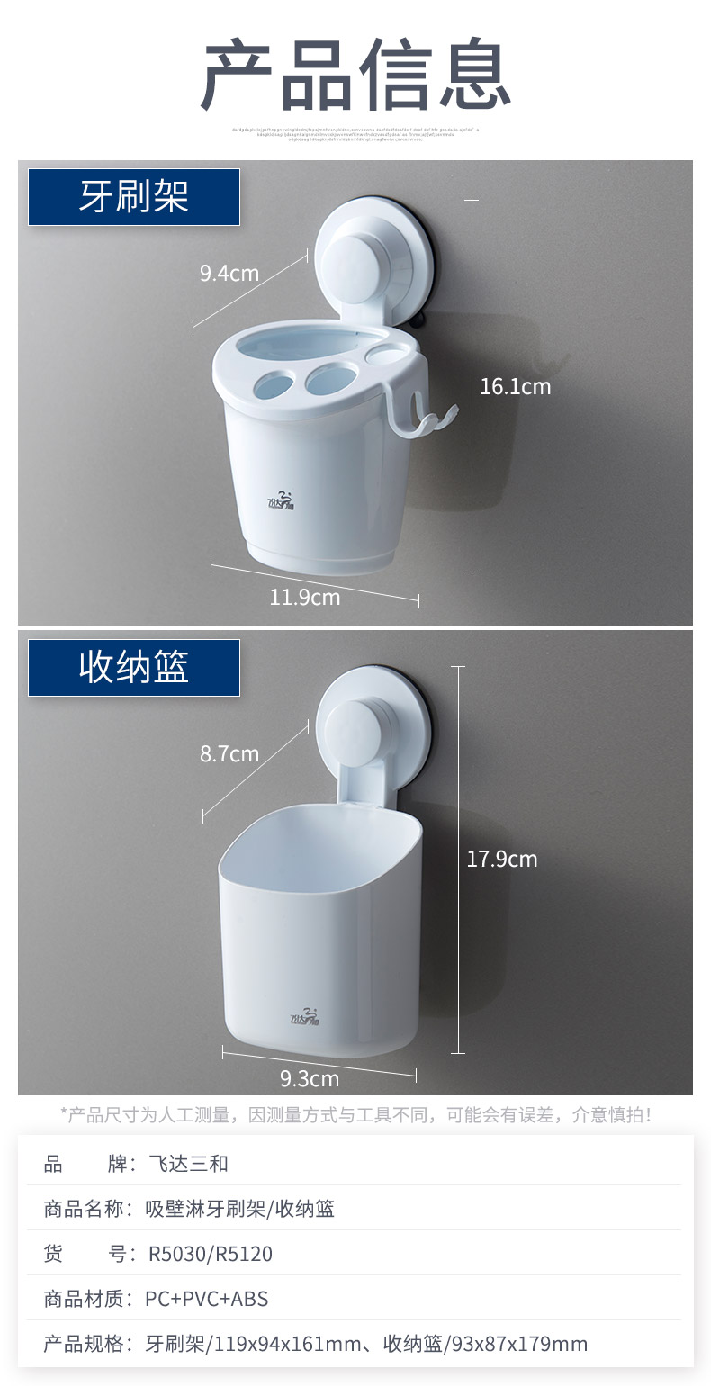 品牌名称:米兰(中国)三和 生产地区:中国·浙江·台州 米兰(中国)货号:R5120 装箱数:48 米兰(中国)尺寸:9.3*8.7*17.9cm 外箱尺寸:61*32.5*61cm 条形码:6931643817578 米兰(中国)三和R5120 强力吸壁小号收纳篮