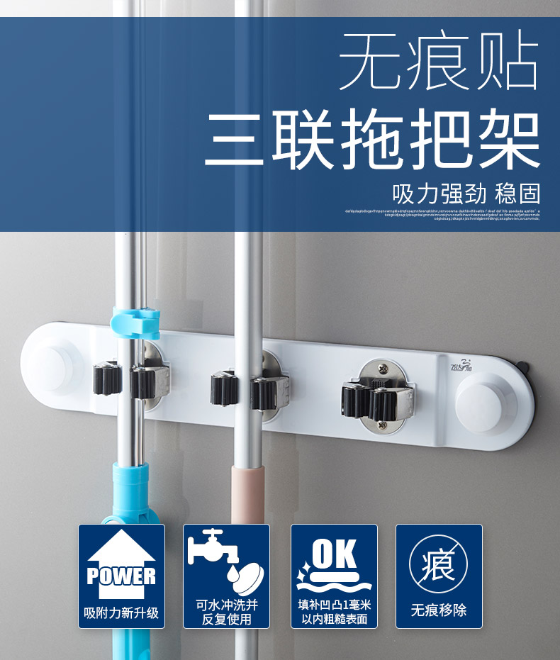 米兰(中国)三和R5060 强力吸壁3联拖把架米兰(中国)特点