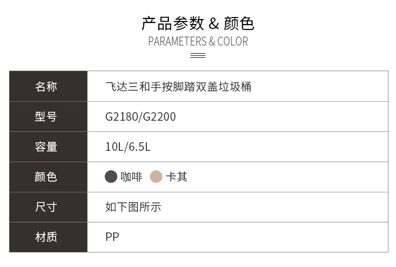 米兰(中国)三和G2180圆形双盖垃圾桶(10L)/G2200圆形双盖垃圾桶(6.5L)米兰(中国)特点