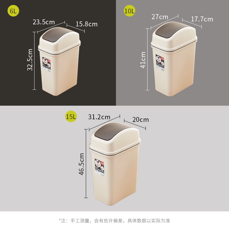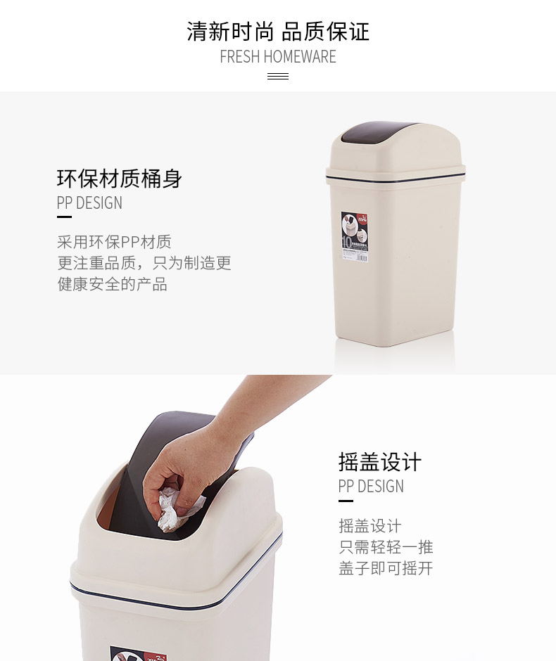 米兰(中国)三和G2600时尚摇盖垃圾桶(6L)/G2610时尚摇盖垃圾桶(10L)/G2620时尚摇盖垃圾桶(15L)