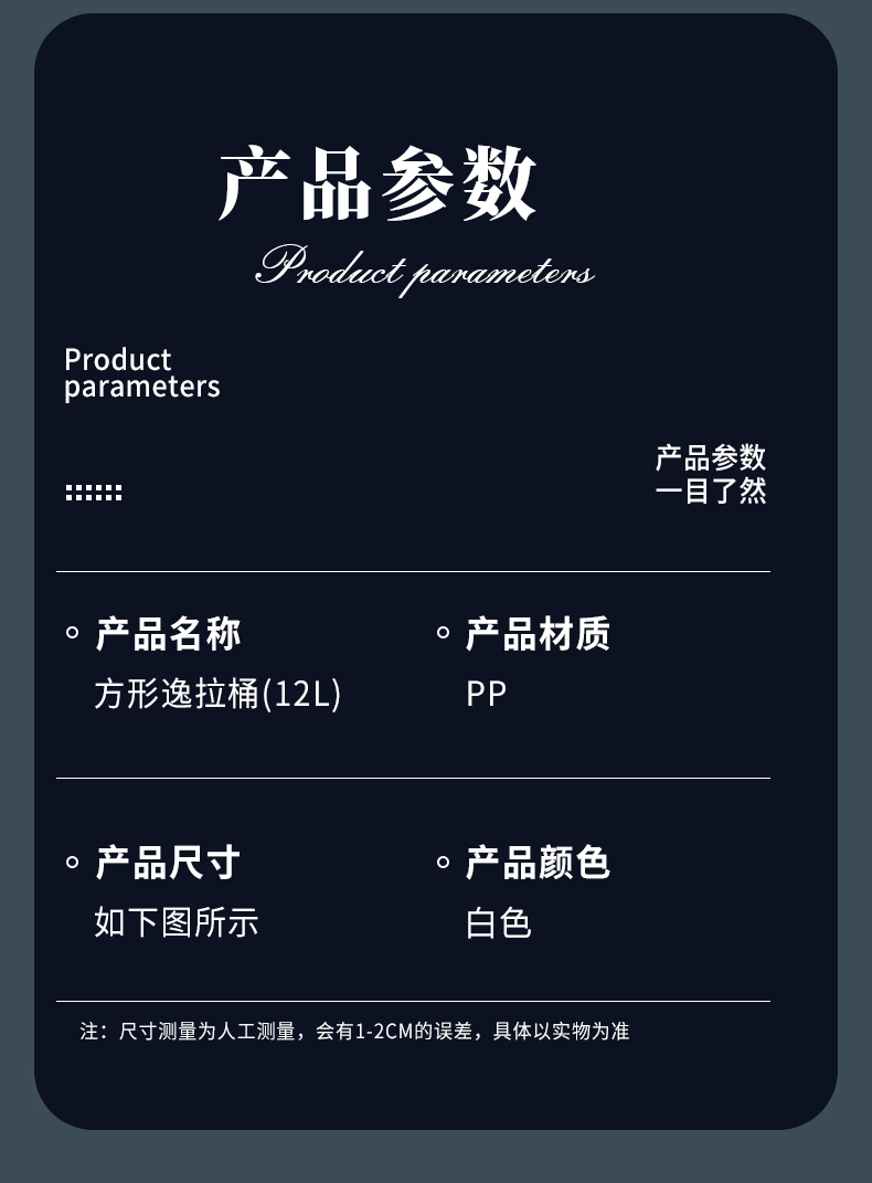 品牌名称:米兰(中国)三和 生产地区:中国·浙江·台州 米兰(中国)货号:TG3610 装箱数: 米兰(中国)尺寸: 外箱尺寸: 条形码: 米兰(中国)三和TG3610 方形逸拉桶 12L