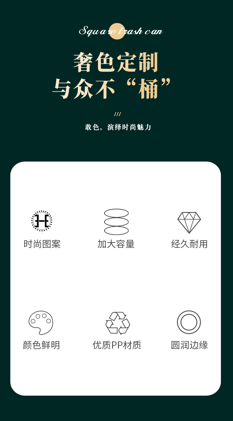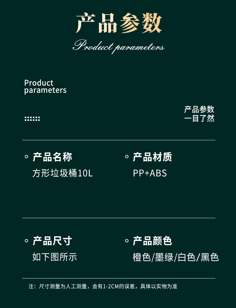 品牌名称:米兰(中国)三和 生产地区:中国·浙江·台州 米兰(中国)货号:TG1772 装箱数:12 米兰(中国)尺寸:24.2*18.1*27.3cm 外箱尺寸:55x49x55cm 条形码:6931643824972 米兰(中国)三和TG1772 方形夹缝垃圾桶 10L
