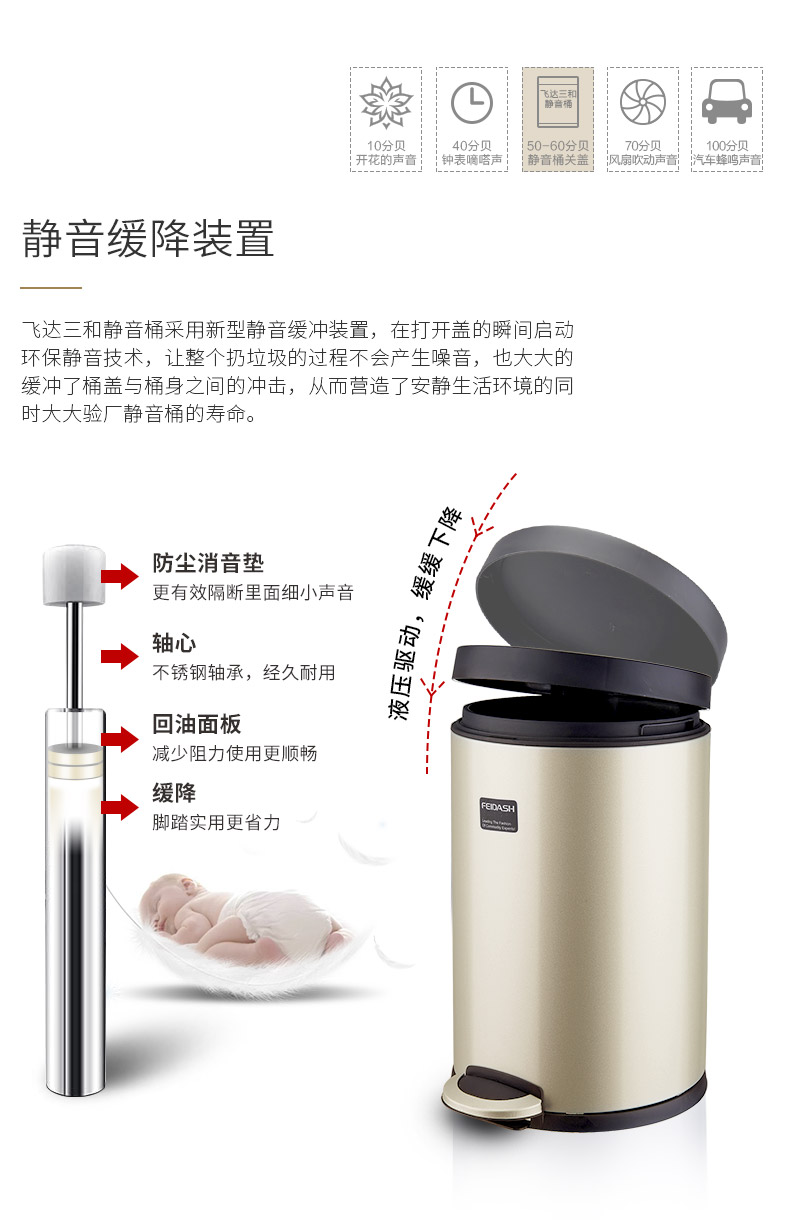 米兰(中国)三和G2761静音垃圾桶5L/G2771静音垃圾桶8L米兰(中国)特点