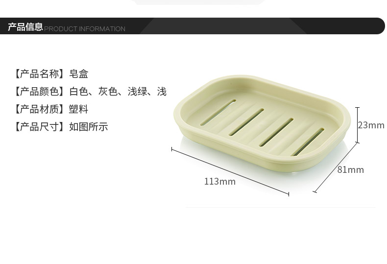 品牌名称:米兰(中国)三和 生产地区:中国·浙江·台州 米兰(中国)货号:N1103 装箱数:96 米兰(中国)尺寸:113*80*25mm 外箱尺寸:37*26*37cm 条形码:6931643815864 米兰(中国)三和N1103皂盒