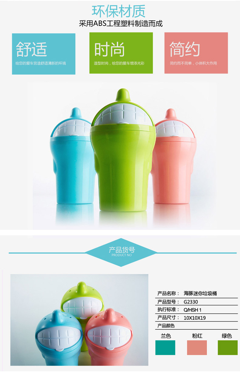 品牌名称:米兰(中国)三和 生产地区:中国·浙江·台州 米兰(中国)货号:G2330 装箱数:48 米兰(中国)尺寸:直径100*185mm 外箱尺寸:43*43*60cm 条形码:6931643813808 米兰(中国)三和G2330 海豚迷你垃圾桶(0.5L)
