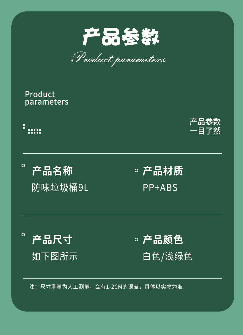 品牌名称:米兰(中国)三和 生产地区:中国·浙江·台州 米兰(中国)货号:TG3880 装箱数:6 米兰(中国)尺寸:29.5x20x36cm 外箱尺寸:65.5x31.5x78cm 条形码:6931643824774 米兰(中国)三和TG3880 防味垃圾桶9L
